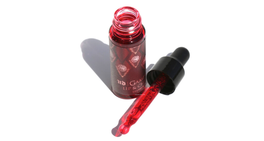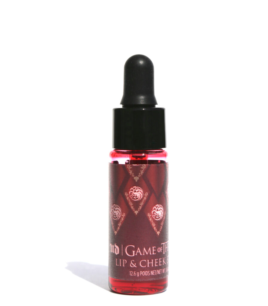 Game of Thrones Dragon’s Dracarys Blood Lip & Cheek Tint (CAN $35.00) | Inspired by the High Valerian command for “dragonfire” (“dracarys“), this universally flattering tint can be worn along either lips or cheeks. Don’t let the blood-red colour throw you off; this slightly viscous liquid lays down as a sheer veil, although you can still build it up to a certain degree. On lips it provides a healthy-looking flush of colour and seems to sink in leaving a nice stain with relatively good staying power. There’s a bit of a learning curve in applying it to cheeks and while fingers can do the job, I found that a flat & dense synthetic brush makes for a more even application.